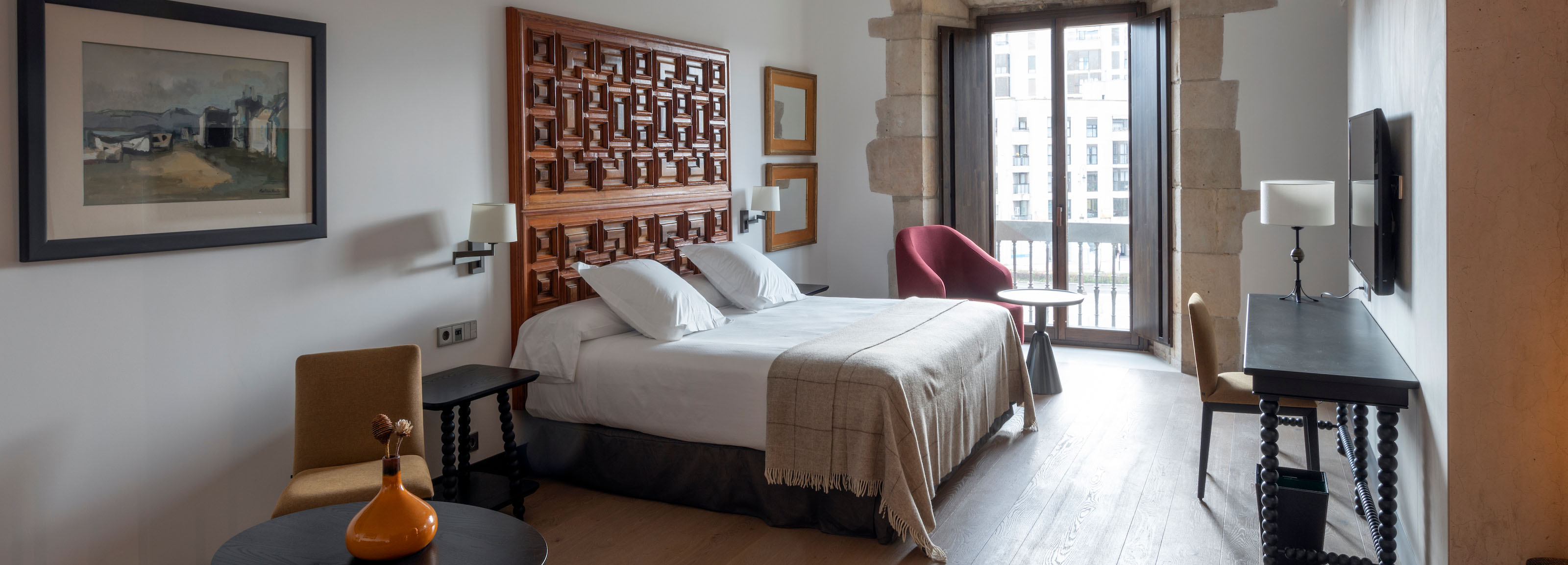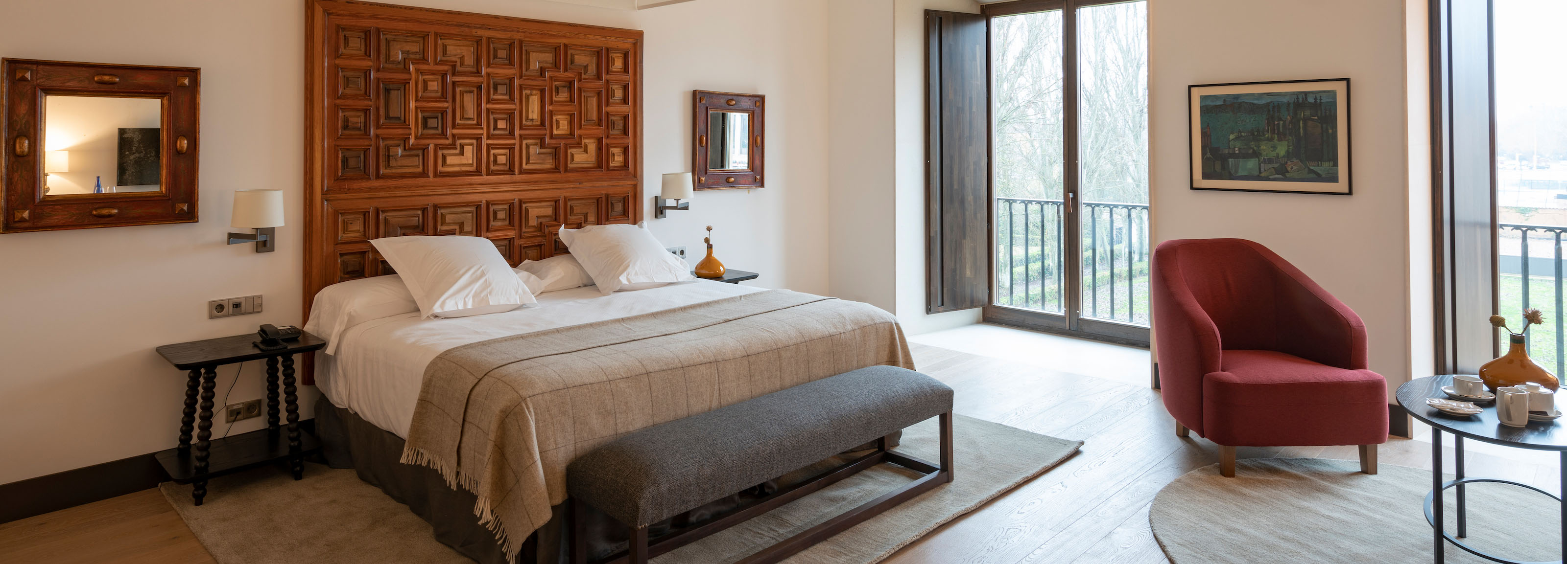 In Klostergang und Kapitelsaal wird die Vergangenheit zu neuem Leben erweckt und verbindet sich dank sinnvoll gestalteter Umbauarbeiten mit der Gegenwart, in Zimmern, die einst den Pilgern Obdach gewährten, z. B. den Suiten des Originalgebäudes mit Blick auf den Platz und einen Anbau aus dem 20. Jh., in dem sich die meisten Unterkünfte befinden.