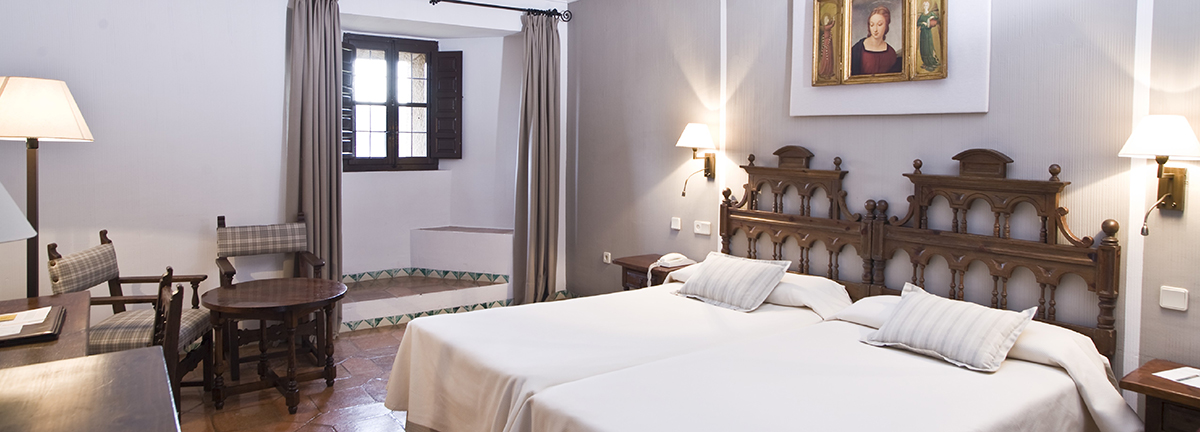 Die traditionelle kastilische Einrichtung des Hotels kommt geschmackvoll in den weiträumigen und gemütlichen Zimmern zur Geltung, einige mit Baldachinbetten und Terrasse, authentische königliche Gemächer eines Palasts. Zu dem Komplex gehört auch eine romanische Kapelle aus dem 13. Jahrhundert.