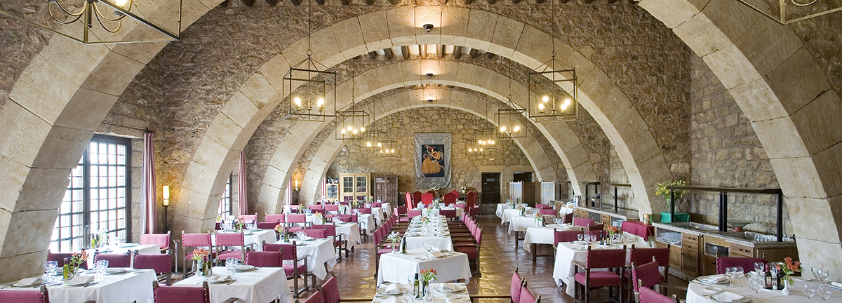 Im Speisesaal werden landestypische Gerichte serviert. Hier können Sie huevos fritos con migas y torreznos (Spiegeleier mit Brot und gebratenem Speck), cabrito lechal al horno (Zickleinbraten), bacalao al queso manchego (Stockfisch mit Käse Manchego) probieren, und zum Nachtisch die berühmten borrachitos seguntinos (Kuchen mit Likör) und die flores de Cabanillas (Gebäck).